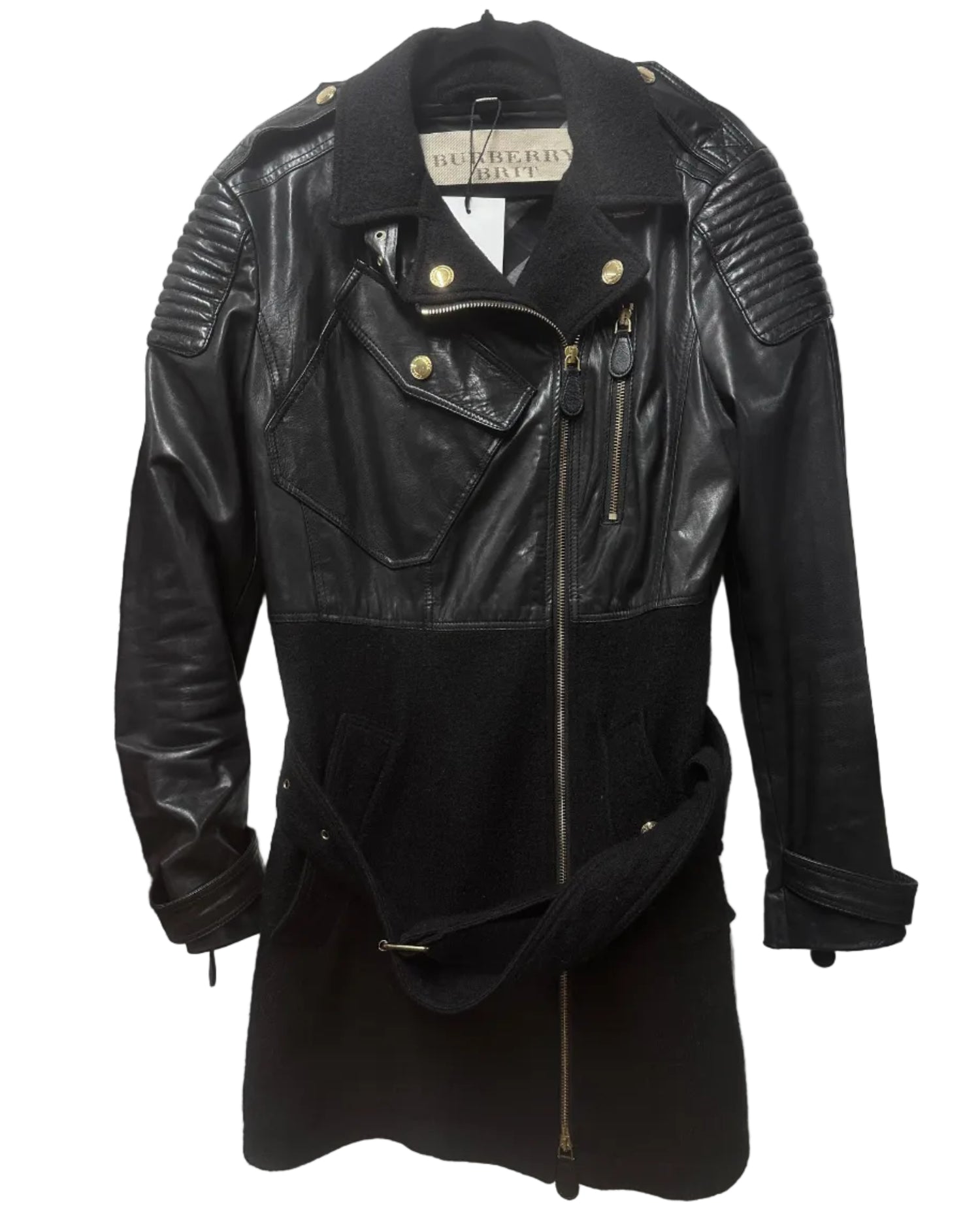 Burberry Leather and Wool Biker Longline Jacket Size UK 10