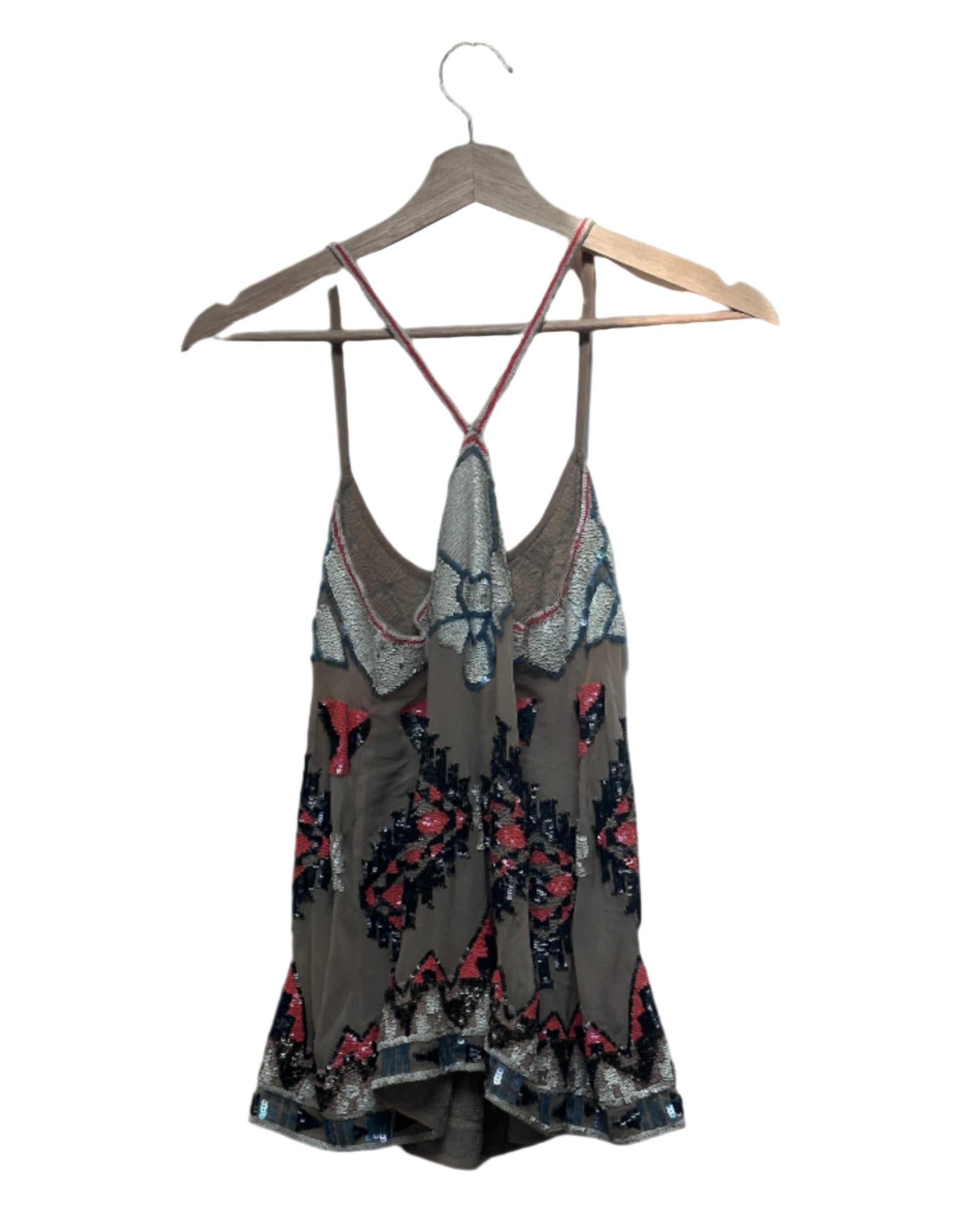 AllSaints Racer Back Embellished Silk Vest Top Size UK 8