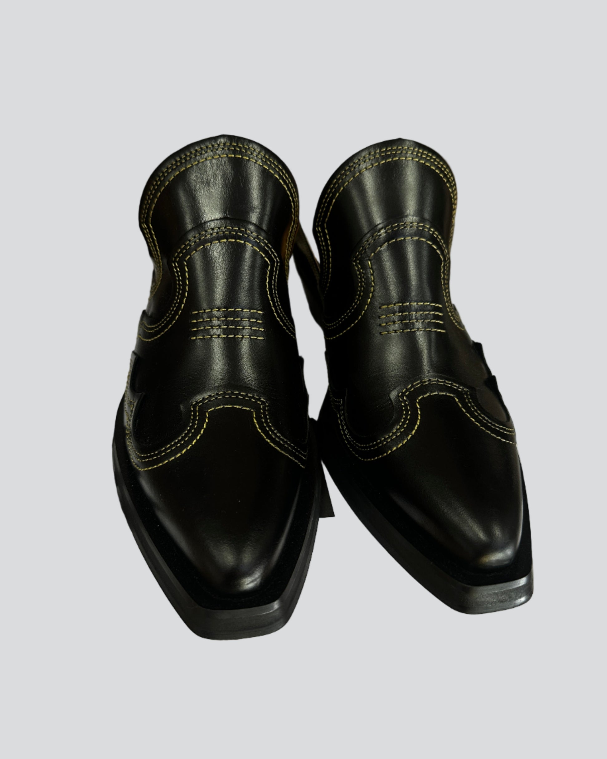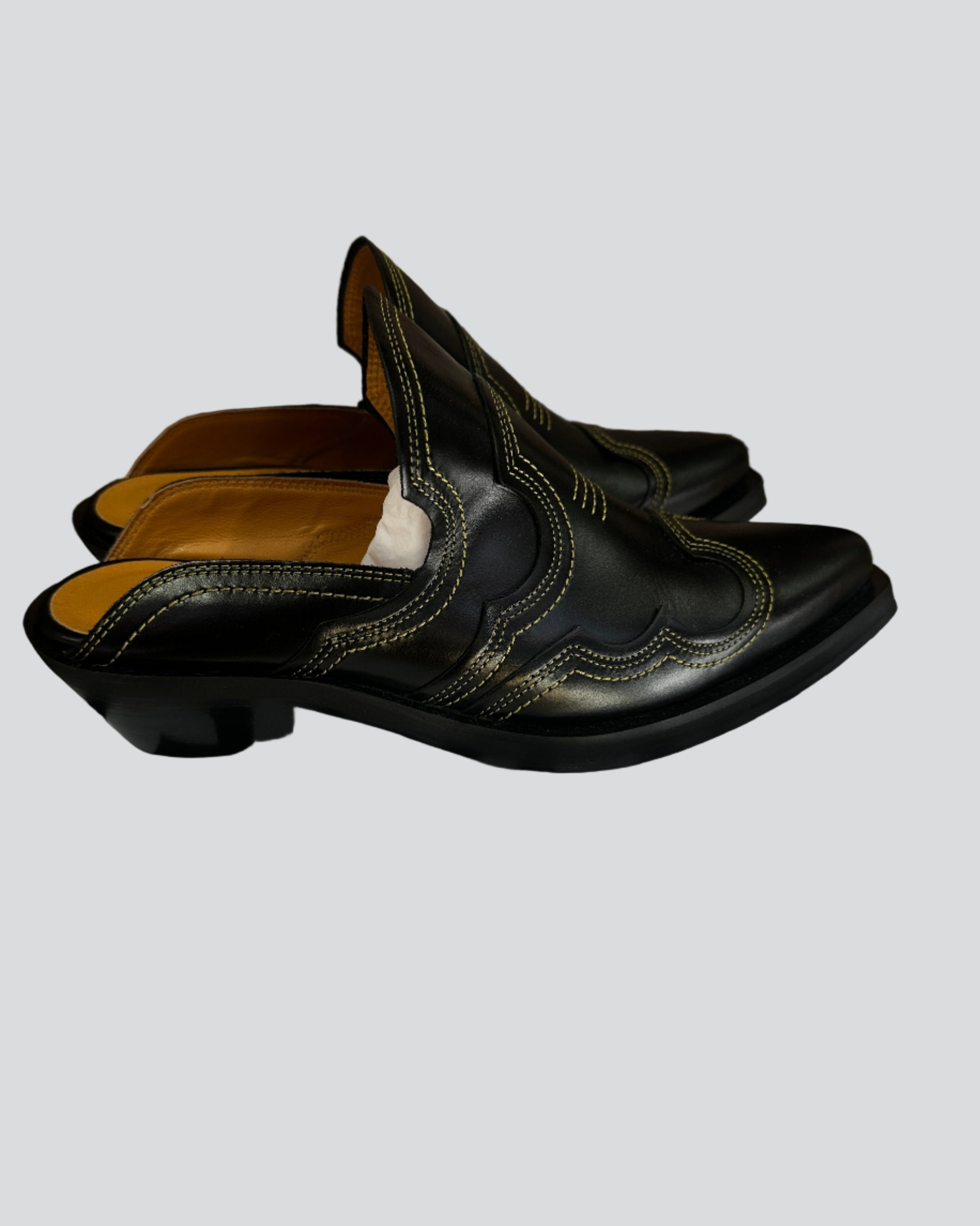 Features: Embroidery on front and mule back. Slight heel to give height.