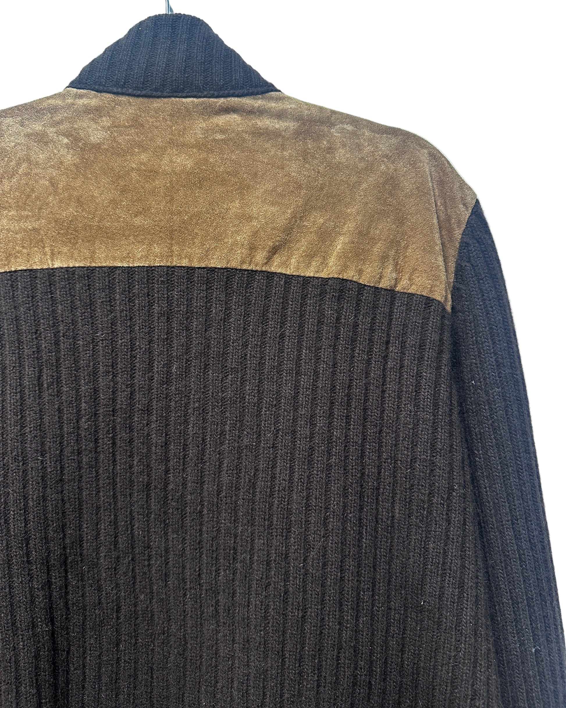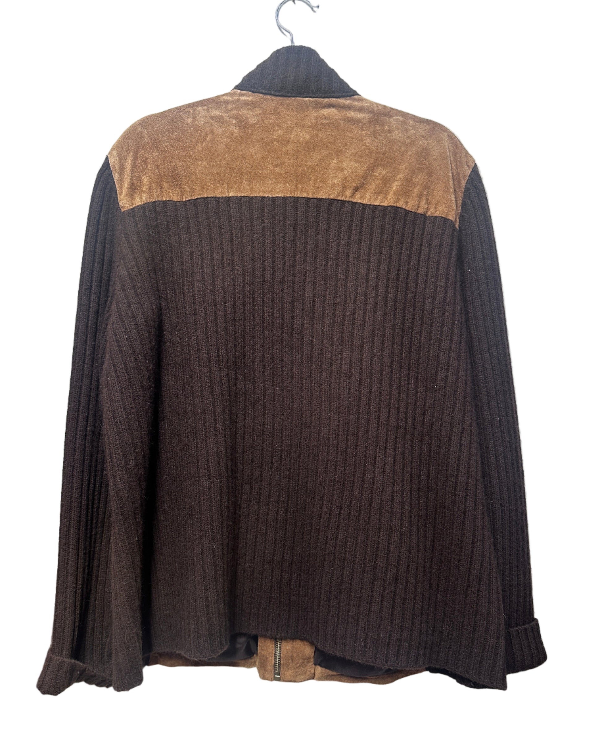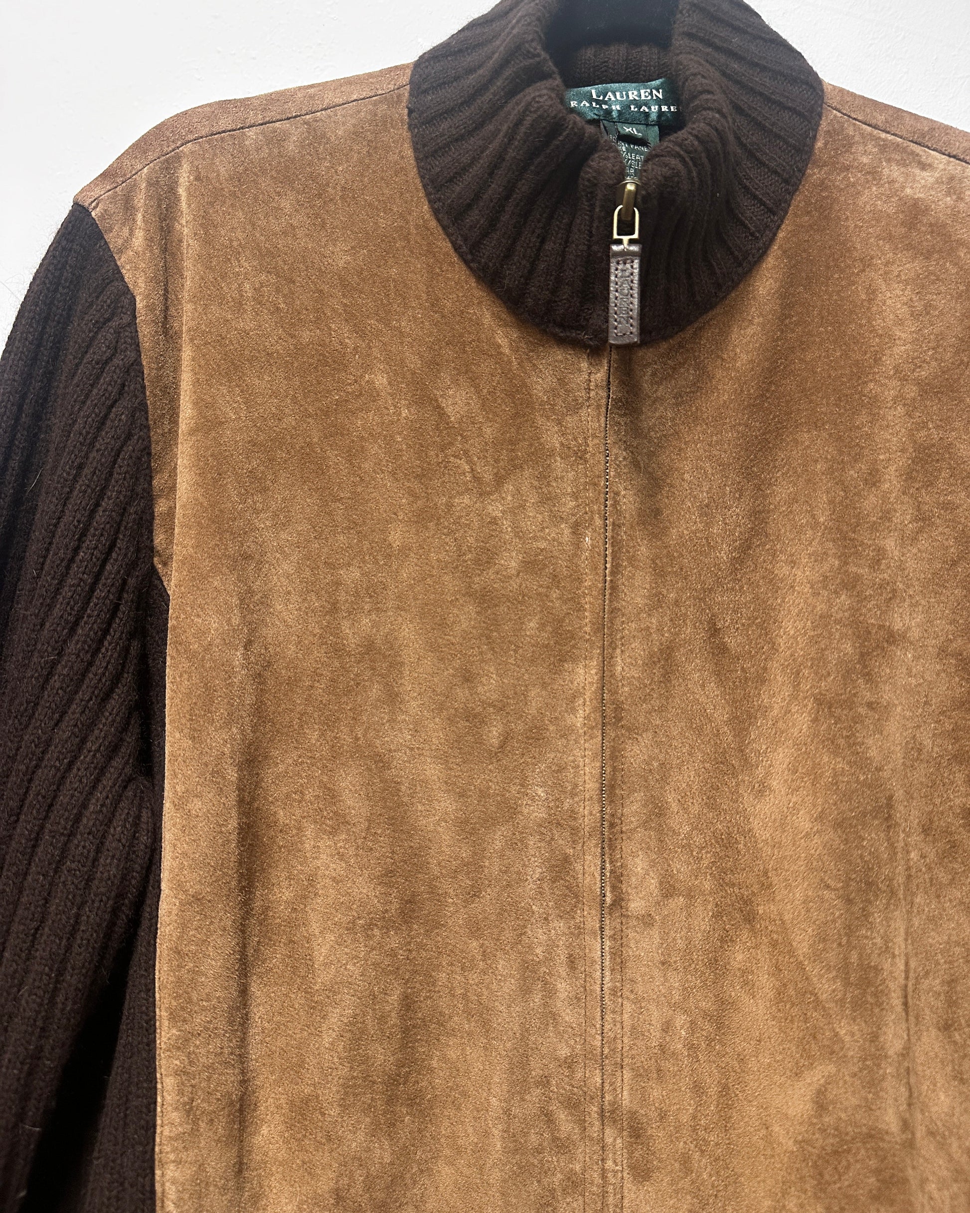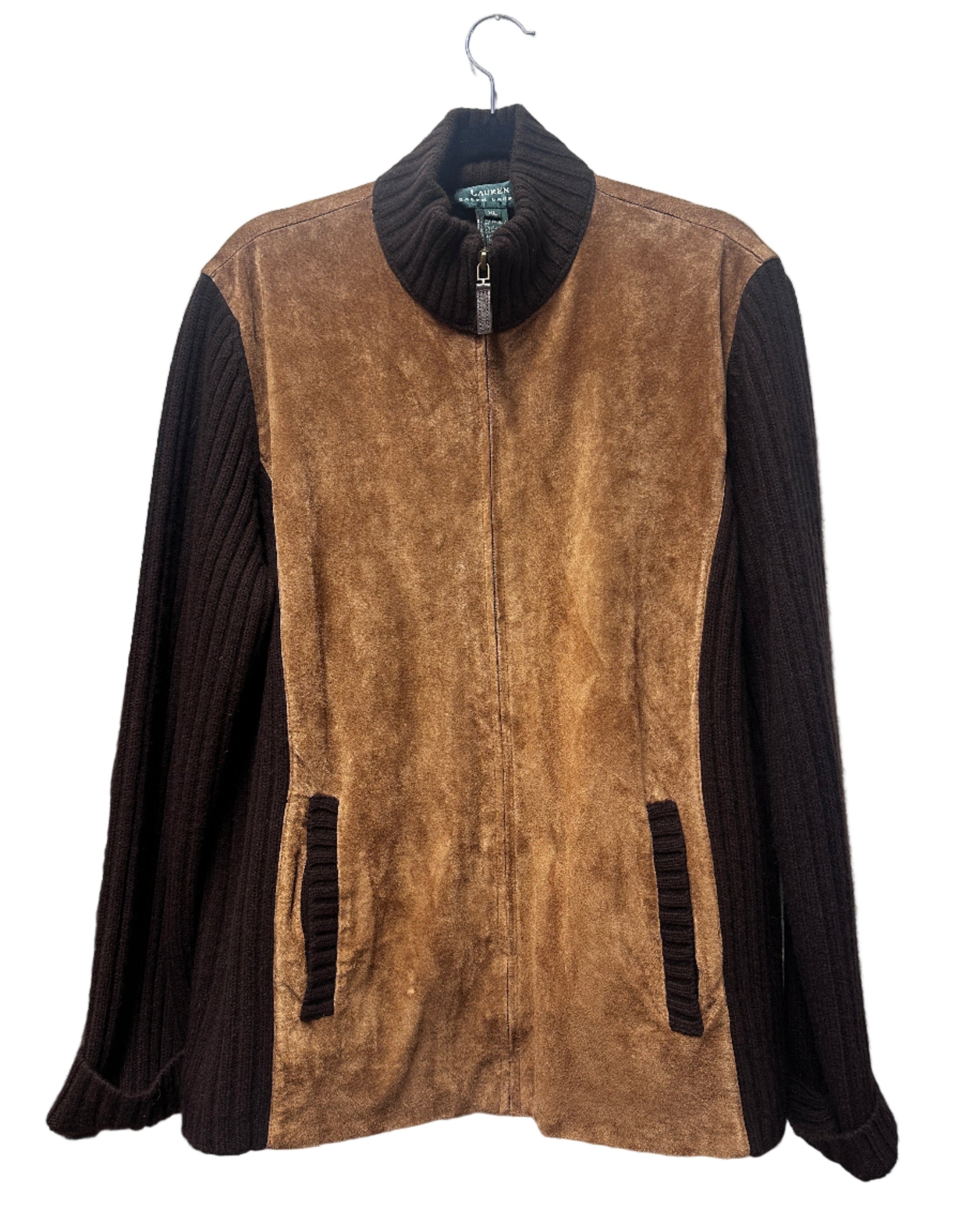 Details: High Neck, Suede and Leather Zip Detail. Front pockets