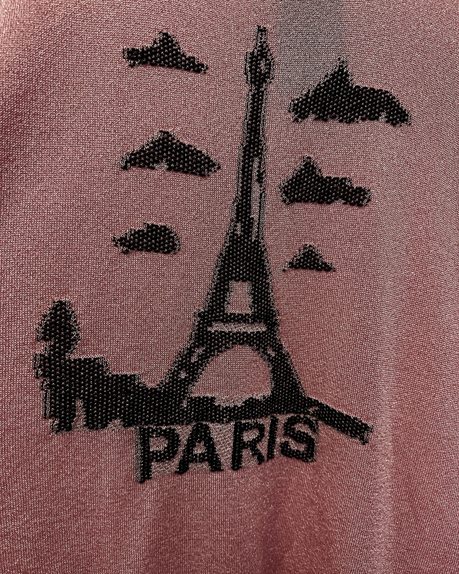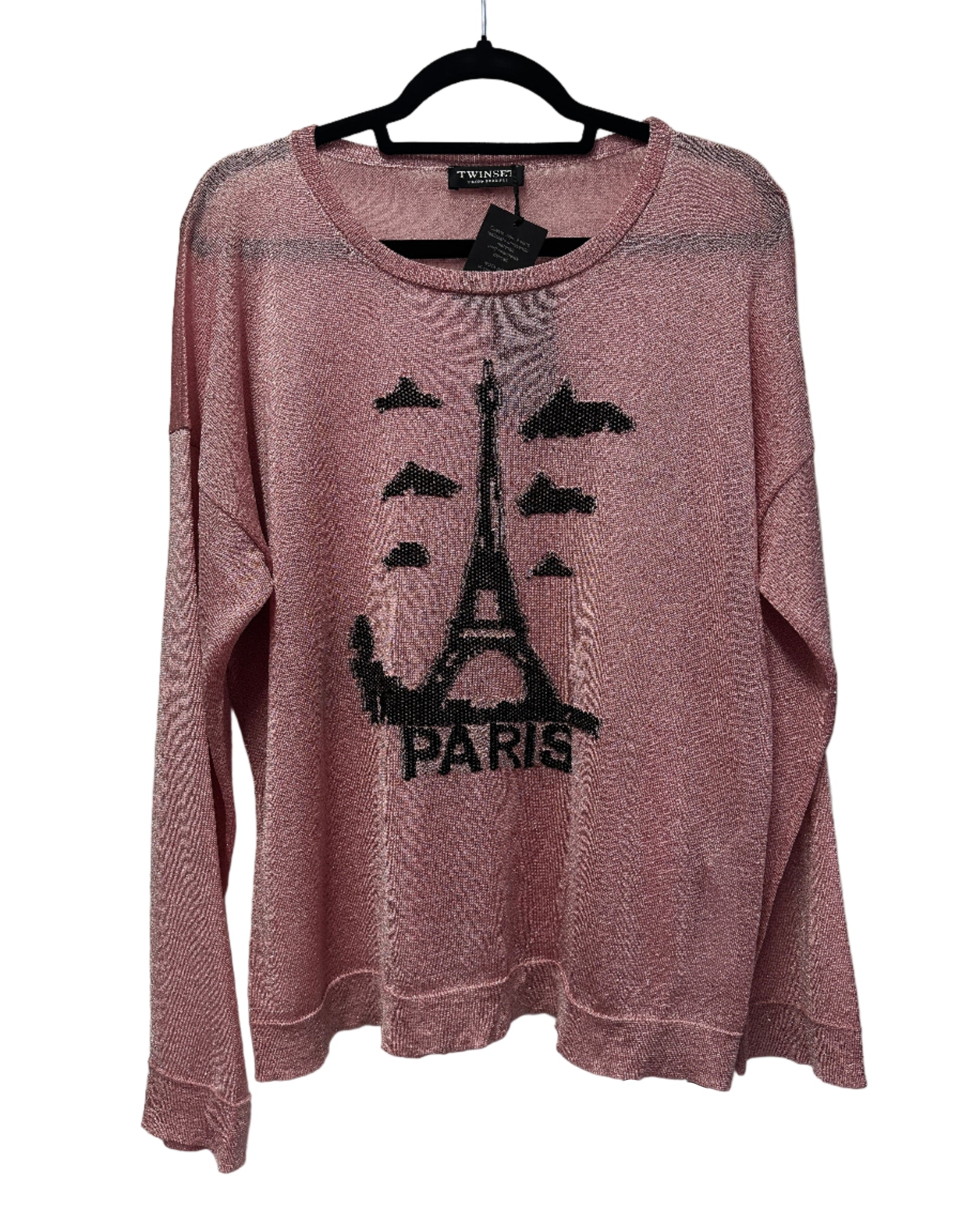 Features: PARIS print in black, pink sparkle material. Lightweight layering sweater.