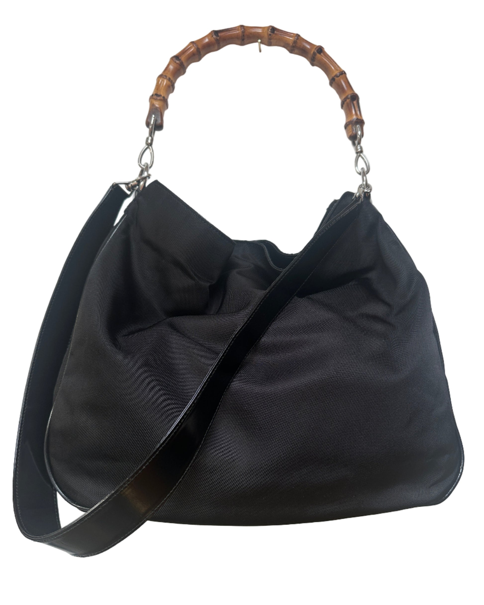 Vintage Gucci Bamboo Nylon and Leather Shoulder & Handbag