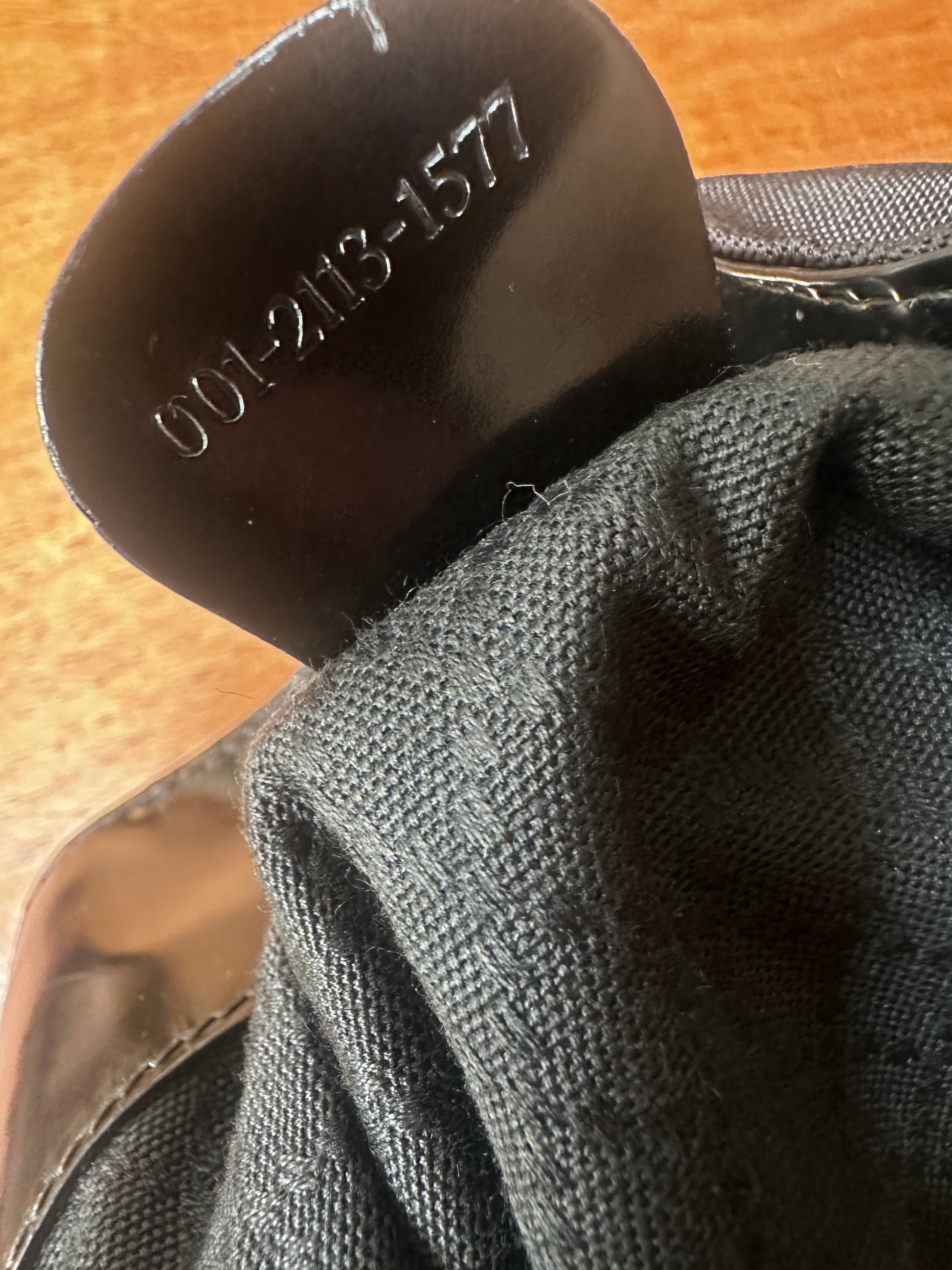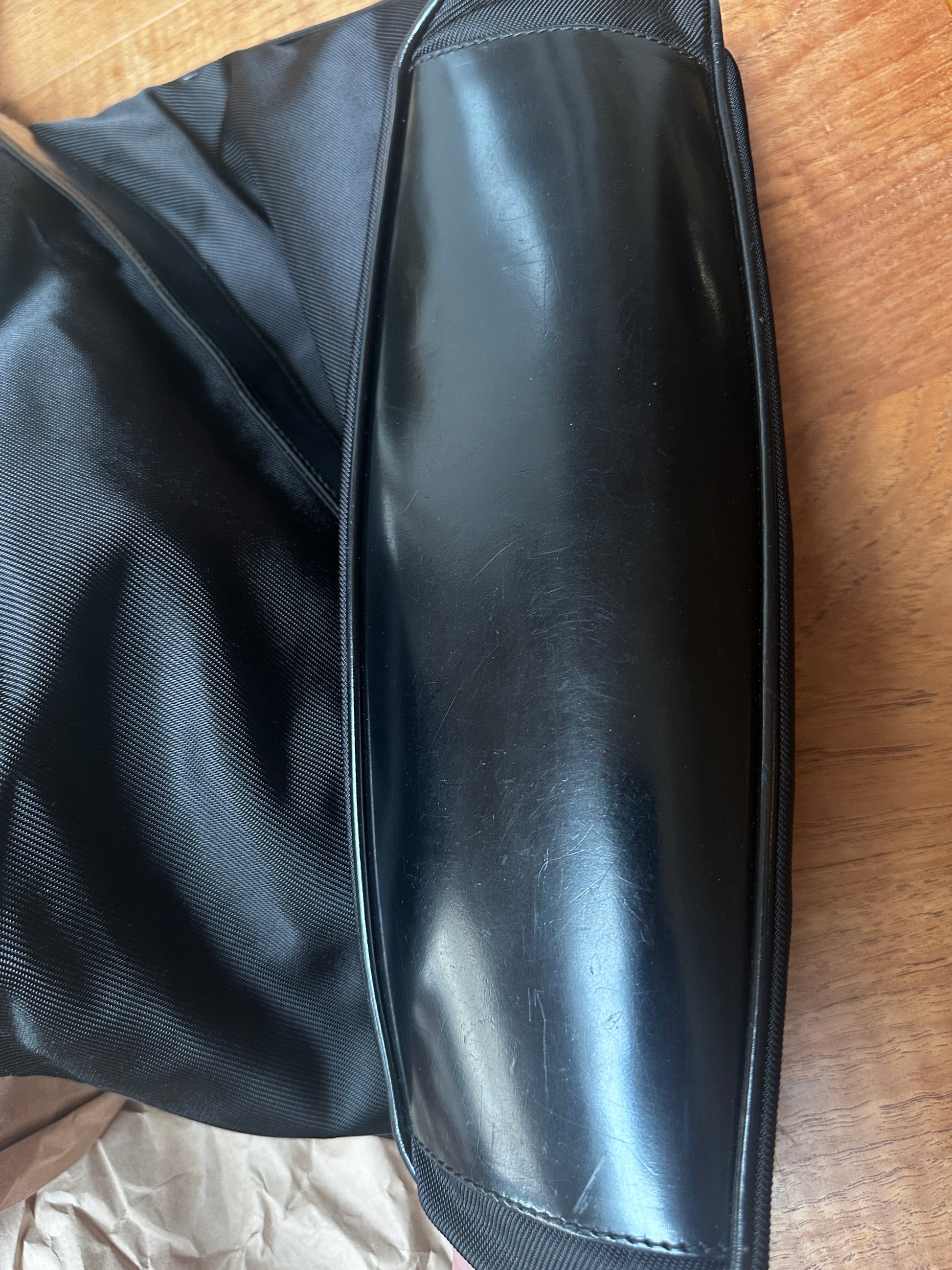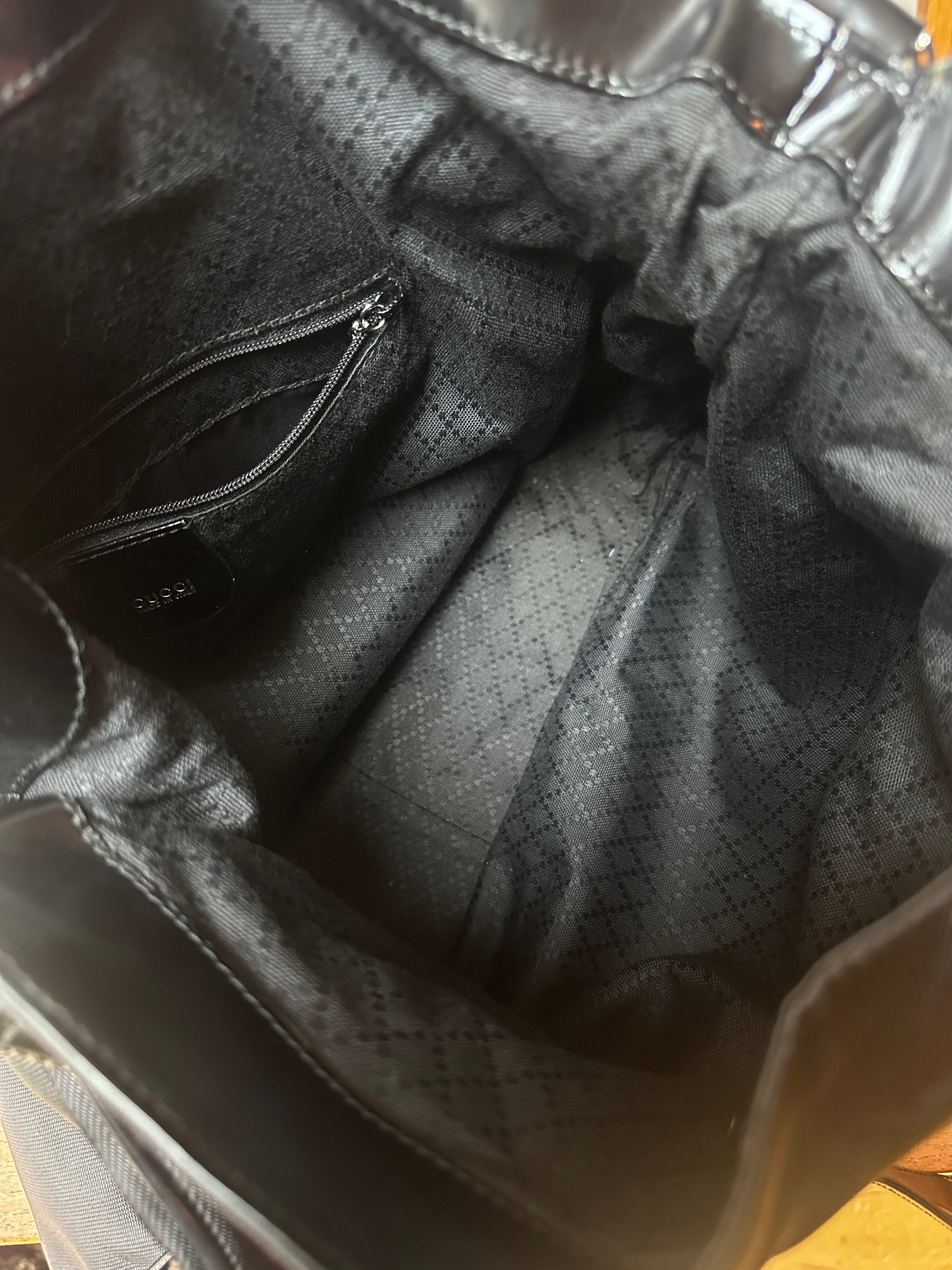Features: Nlyon body, with patent leather strap and patent leather base. Gorgeous bamboo detail and big enough for a laptop and other essentials. Great every day with internal zip and vintage lining.