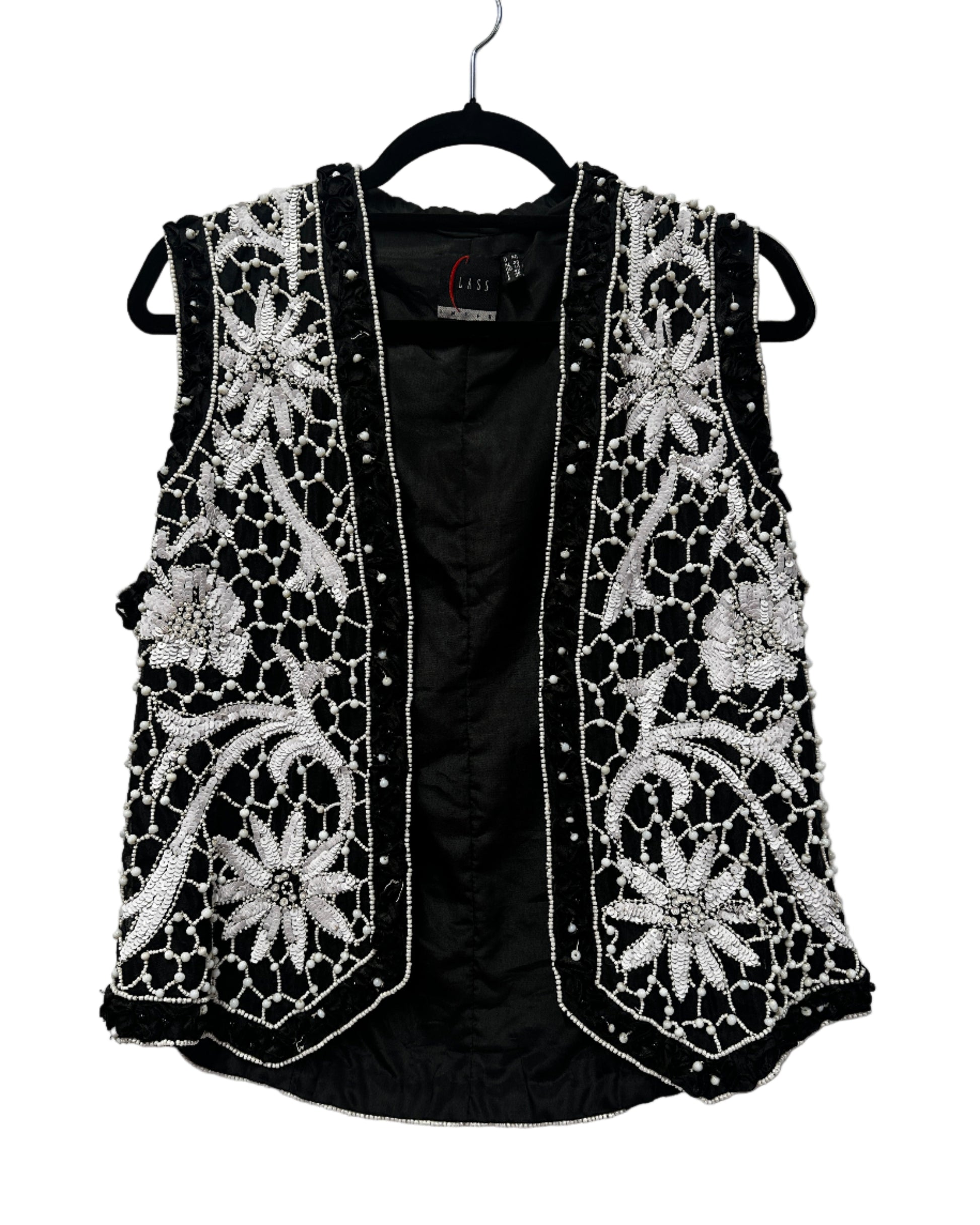 Features: Waistcoat with silk outer shell and beaded embellishment throughout.